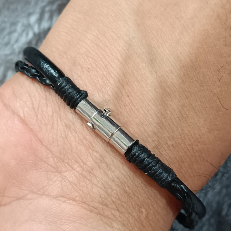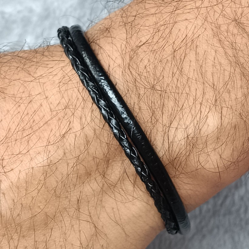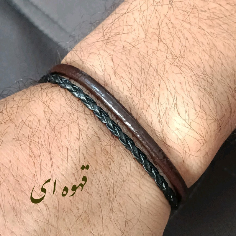 دستبند مردانه مدل چرمی رینگی بافت دار