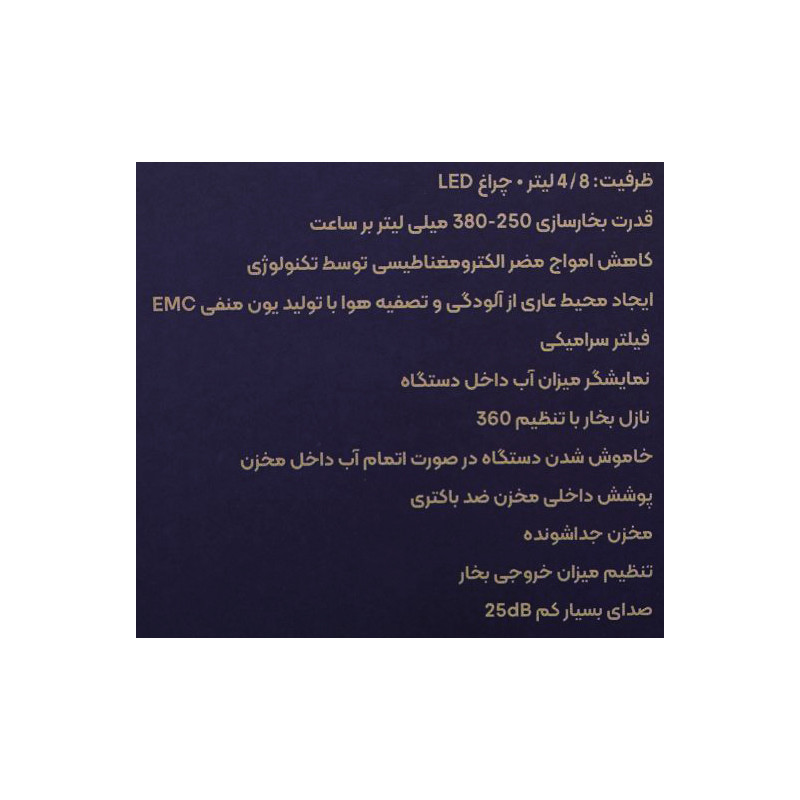 توان مصرفی 35 وات - میزان رطوبت دهی 250-380 ml/H