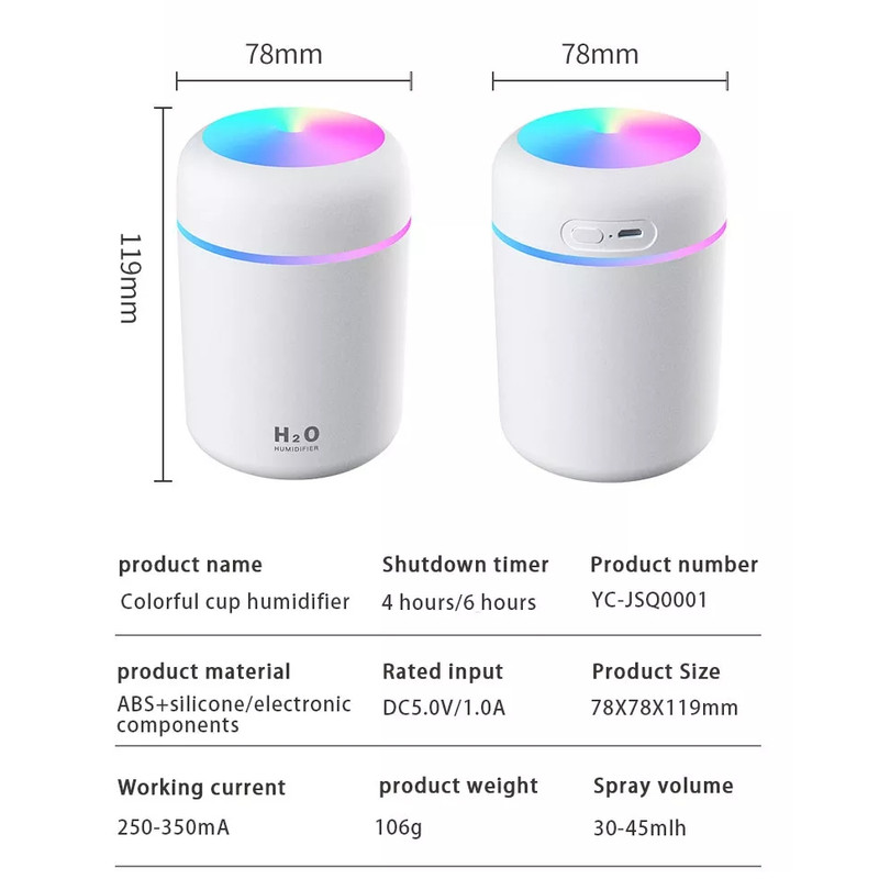 یک بار فشار دادن دکمه: روشن شدن بخور سرد به صورت پیوسته، دوباره فشار دادن دکمه: بخور سرد به صورت ناپیوسته، به مدت 3 ثانیه نگه داشتن دکمه: روشن شدن نور سفید، دوباره به مدت 3 ثانیه نگه داشتن دکمه: روشن شدن نور رنگین کمانی
