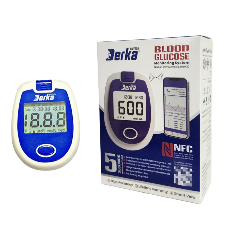 دستگاه تست قند خون درکا مدل D110071 به همراه نوار تست قند خون چهار بسته بسته 50 عددی