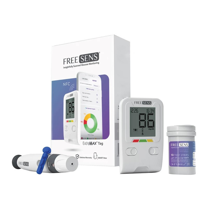 دستگاه تست قند خون فریسنس مدل TAG به همراه قلم و 100 عدد سوزن و 50 عدد نوار تست قند خون
