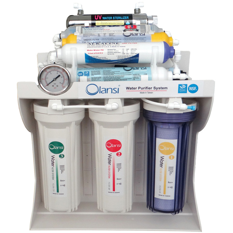 تصفیه آب خانگی با روش اسمز معکوس- اشعه ماورابنفش - قلیایی ساز - اکسیژن ساز و دارای فیلتر مینرال جهت افزودن املاح مفید مورد نیاز به آب
