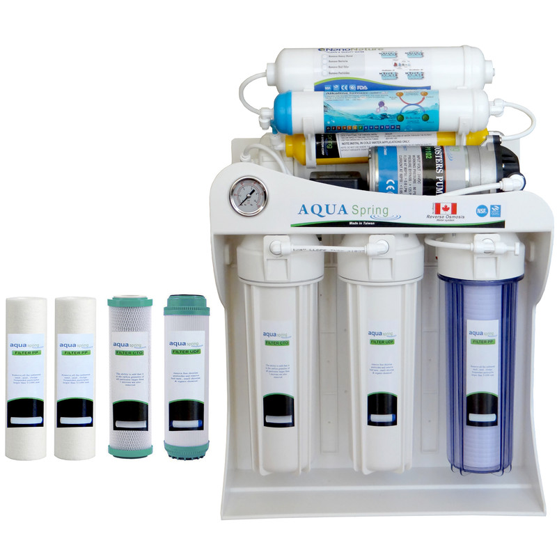 دستگاه تصفیه کننده آب آکوآ اسپرینگ مدل AQ-SF2400 به همراه فیلتر دستگاه تصفیه کننده آب بسته 4 عددی