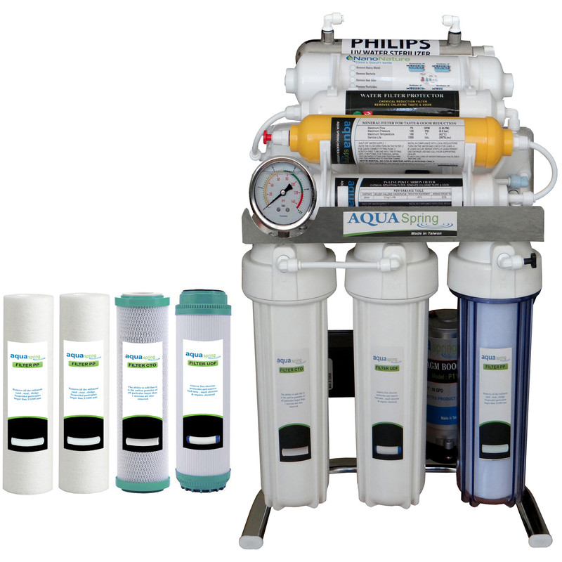 دستگاه تصفیه کننده آب آکوآ اسپرینگ مدل CHROME-XN9 به همراه فیلتر مجموعه 4 عددی