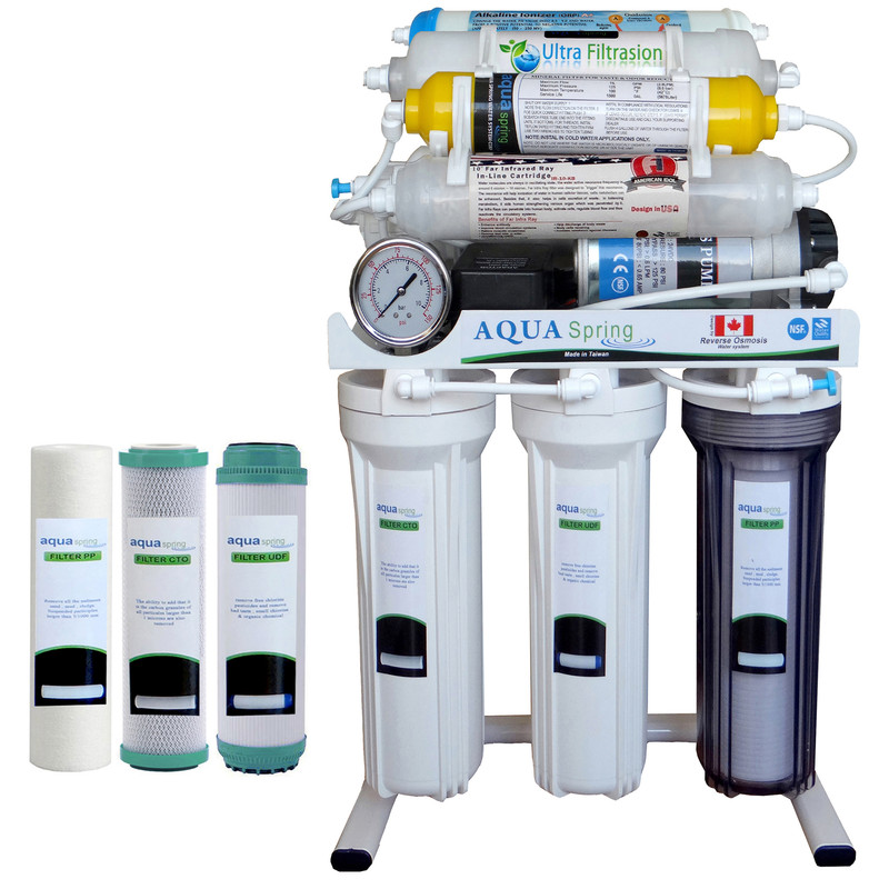 دستگاه تصفیه کننده آب آکوآ اسپرینگ مدل NF3800 به همراه فیلتر تصفیه آب مدل 01 مجموعه 3 عددی