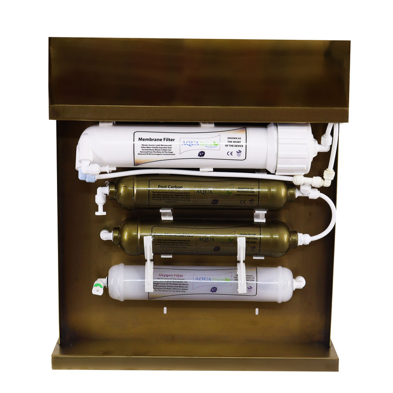 فیلتر(PP) :حذف ذرات معلق ،شن و ماسه گل لای زنگ و لوله _ فیلتر (UDF) : تهیه شده از کربن پوسته نارگیل جهت حذف کلر و آلاینده های شیمیایی _فیلتر (CTO) :تکمیل کننده مرحله دوم _فیلتر (MEMBERAN): اصلی ترین فیلتر دستگاه جهت حذف ویروس ها و میکرو ارگانیسم هایی نظیر نیترات نیتریت آرسنیک و فلزات سنگین و... _فیلتر (POST CARBON): این فیلتر تاثیرات ناشی از ماندگاری آب در مخزن را از بین برده و جهت بهبود طعم و مزه میباشد_فیلتر (MINERAL) :جهت اضافه نمودن املاح مورد نیاز بدن _فیلتر اکسیژن ساز به وسیله سنگ های بیوسرامیکی و شکست مولکولی سطح میزان اکسیژن آب را افزایش می دهد.