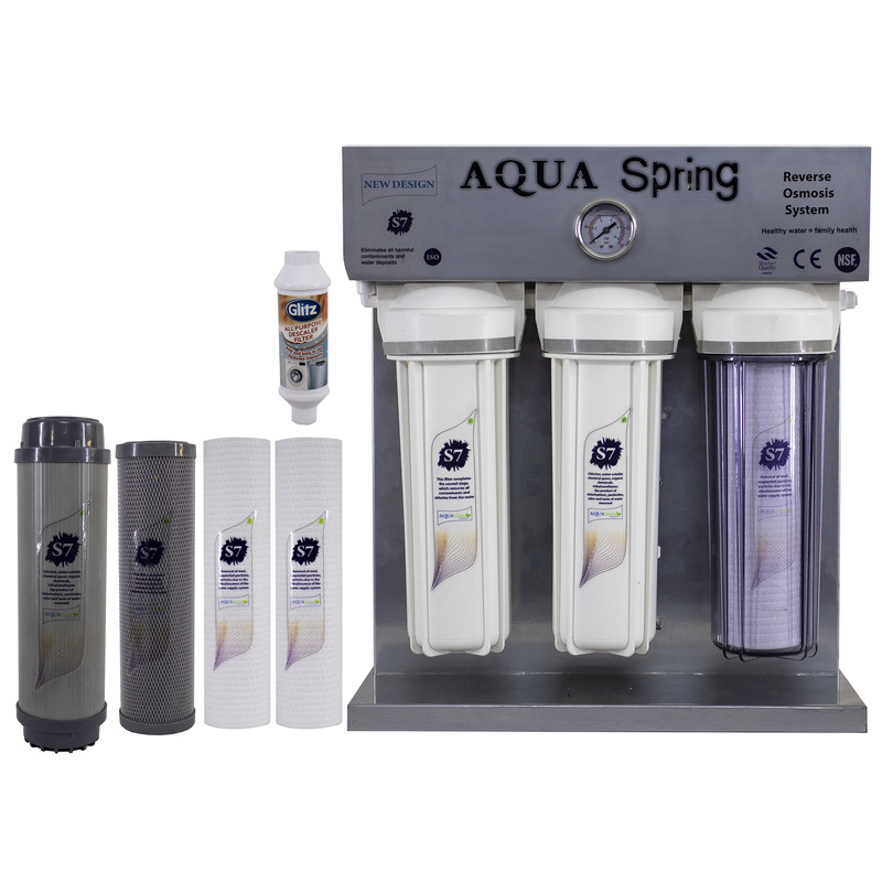 دستگاه تصفیه کننده آب آکوآ اسپرینگ مدل RO-S7-KZ 7077 به همراه فیلتر مجموعه 4 عددی و رسوبگیر گلیتر