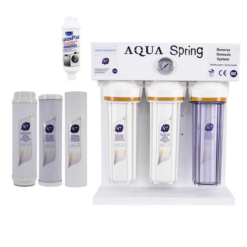 دستگاه تصفیه کننده آب آکوآ اسپرینگ مدل RO-S7-WZ 7070 به همراه سه فیلتر و رسوبگیر اسکالکس پلاس
