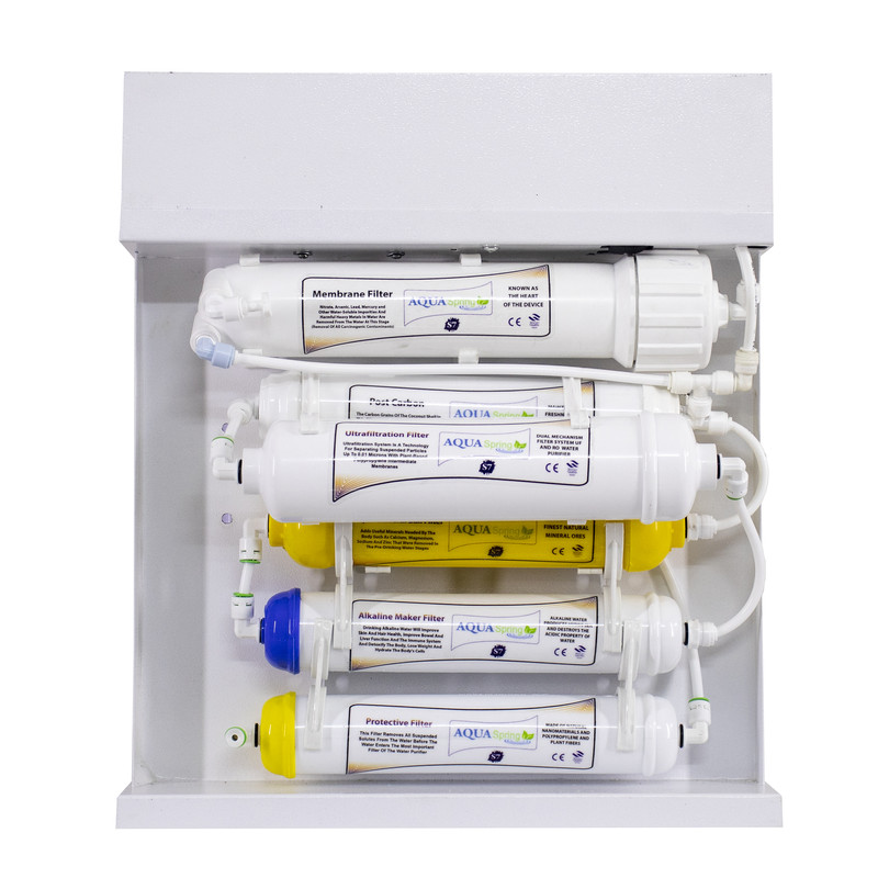 فیلتر(PP) :حذف ذرات معلق ،شن و ماسه گل لای زنگ لوله _ فیلتر (UDF) : تهیه شده از کربن پوسته نارگیل جهت حذف کلر و آلاینده های شیمیایی _فیلتر (CTO) :تکمیل کننده مرحله دوم _فیلتر (MEMBERAN): اصلی ترین فیلتر دستگاه جهت حذف ویروس ها و میکرو ارگانیسم هایی نظیر نیترات ، نیتریت آرسنیک و فلزات سنگین و... _فیلتر (POST CARBON): این فیلتر تاثیرات ناشی از ماندگاری آب در مخزن را از بین برده و جهت بهبود طعم و مزه میباشد_فیلتر (MINERAL) :جهت اضافه نمودن املاح مورد نیاز بدن _ فیلتر قلیایی ساز جهت تنظیم PH آب (افزایش سیستم ایمنی بدن ، سلامت پوست و مو ، سم زدایی بدن و .....)_فیلتر اولترافیلتراسیون (UF) سیستم جداسازی ذرات معلق تا01/0 میکرون باغشاهای میان تهی ازجنس پلی پروپلین برپایه گیاهی گفته میشود _فیلتر محافظ ممبراین :این فیلتر قبل از ورود آب به ممبراین املاح و سختی را حذف نموده و منجر به افزایش طول عمر فیلتر ممبراین خواهد شد.