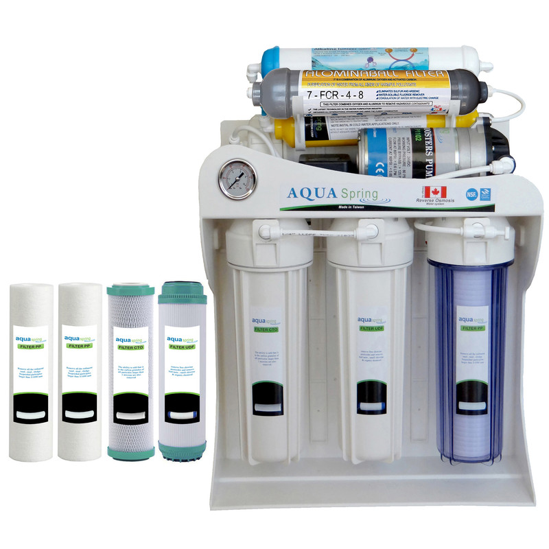 دستگاه تصفیه کننده آب آکوآ اسپرینگ مدل RO-SF5500 به همراه فیلتر تصفیه آب مجموعه 4 عددی