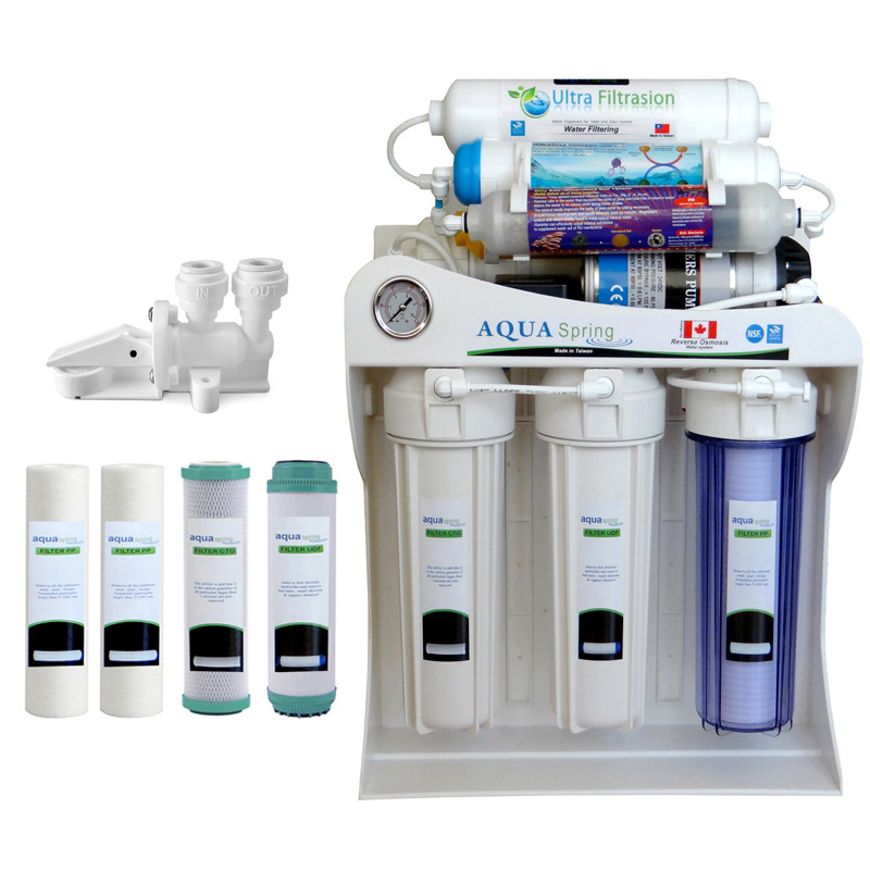 دستگاه تصفیه کننده آب آکوآ اسپرینگ مدل UF-SF4000 به همراه فیلتر مدل 02 مجموعه 4 عددی و کیت نشتی گیر