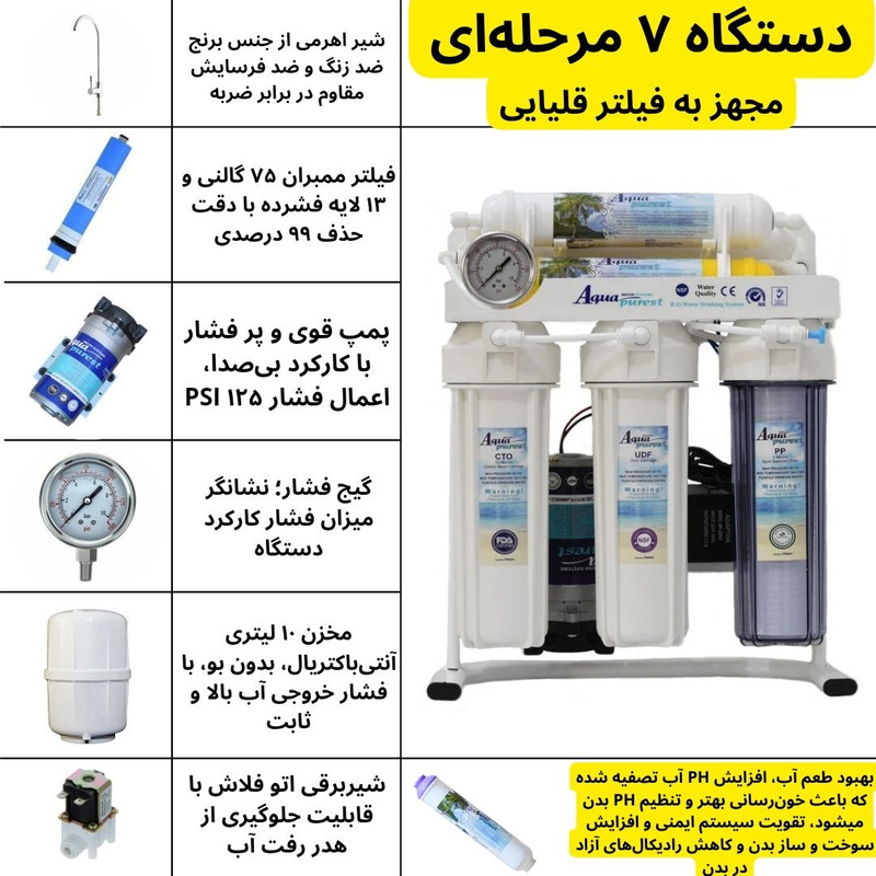 قیمت مناسب . نصب و کاربری آسان، متعلقات نصب کامل +دارای فیلتر مرحله 7 قلیایی+ قابلیت نصب به یخچال، قهوه ساز، آب سرد کن