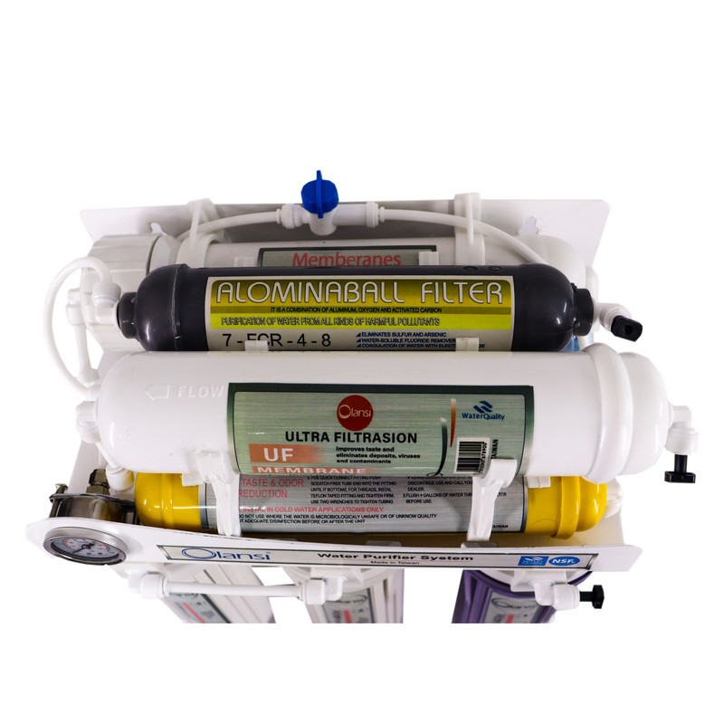 - فیلتر الیافی pp - فیلتر کربن پودری UDF - فیلتر کربن بلاک CTO - فیلتر ممبراین MEMBRANE - فیلتر کربن نهایی POST CARBON - فیلتر مینرال --ALKALINE IONIZER- -فیلتر آلومینابال ALOMINABALL-فیلتر مکانیزم دوگانه اولترافیلتراسیون (UF)