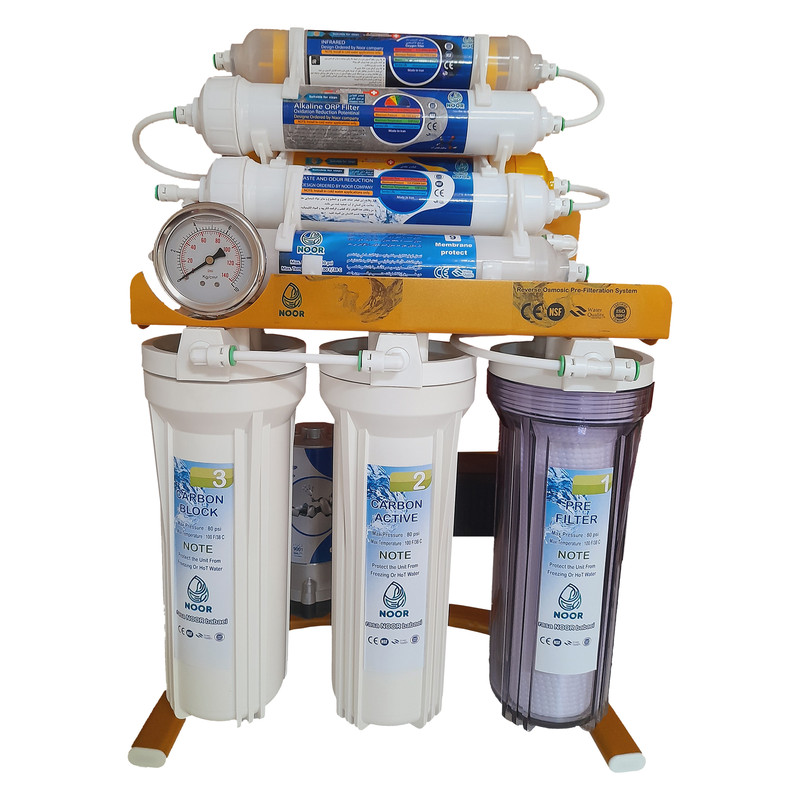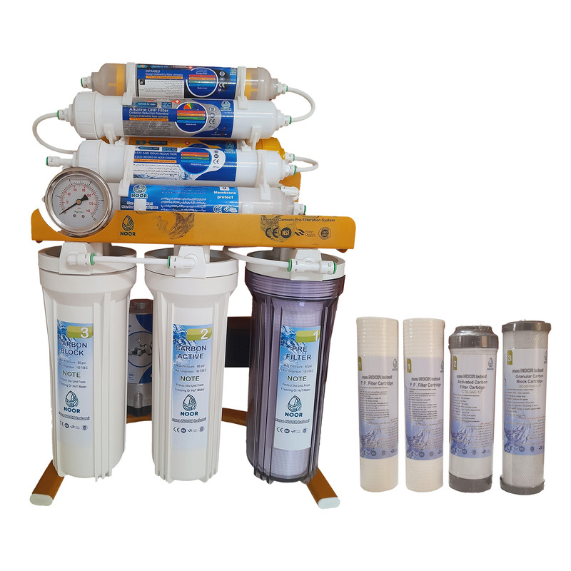 فیلتر p.p یک میکرون 150 گرم ، فیلتر کربن اکتیو ، فیلتر کربن بلاک ، فیلتر ممبران film tec ، فیلتر پست کربن ، فیلتر مینرال یا معدنی ، فیلتر قلیایی ، فیلتر اکسیژن ساز ، فیلتر محافظ ممبران