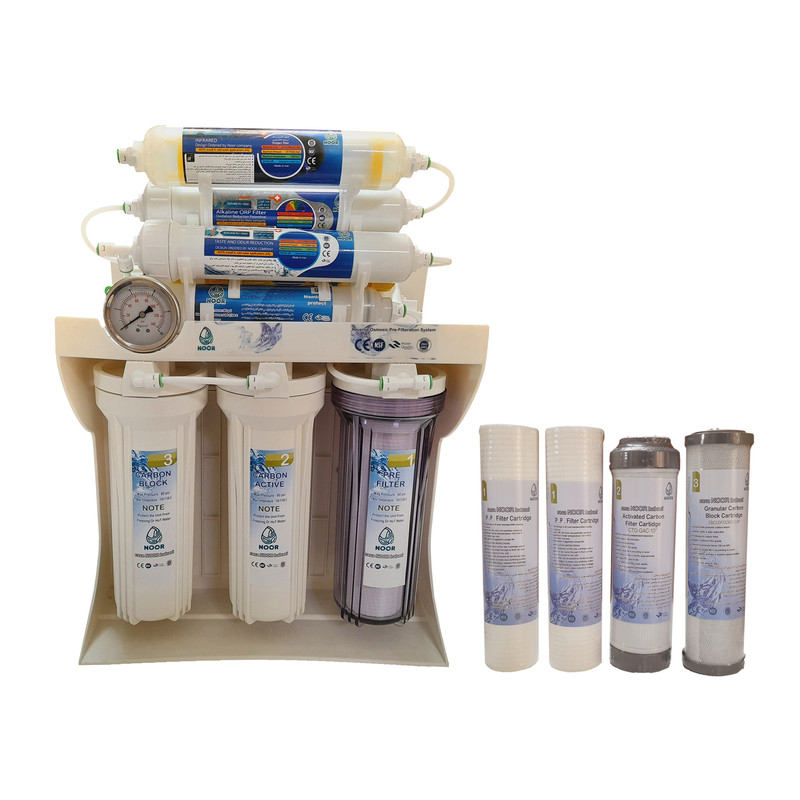 فیلتر پلی پرو پیلن یک میکرون 150 گرم ، فیلتر کربن اکتیو ، فیلتر کربن بلاک ، فیلتر ممبران film tec ، فیلتر پست کربن ، فیلتر معدنی یا مینرال ، فیلتر قلیایی ، فیلتر اکسیژن ساز ، فیلتر محافظ ممبران