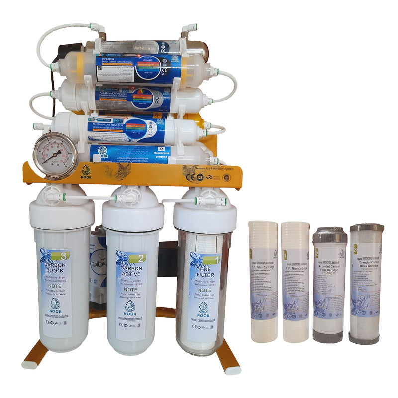 فیلتر p.p یک میکرون 150 گرم ، فیلتر کربن اکتیو ، فیلتر کربن بلاک ، فیلتر ممبران film tec ، فیلتر پست کربن ، فیلتر مینرال یا معدنی ، فیلتر قلیایی ، فیلتر اکسیژن ساز ، فیلتر محافظ ممبران ، فیلتر لامپ uv