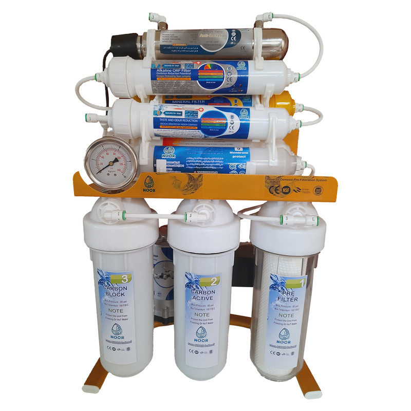 فیلتر p.p یک میکرون 15 گرم ، فیلتر کربن اکتیو ، فیلتر کربن بلاک ، فیلتر ممبران film tec ، فیلتر پست کربن ، فیلتر مینرال یا معدنی ، فیلتر قلیایی ، فیلتر محافظ ممبران ، فیلتر لامپ uv
