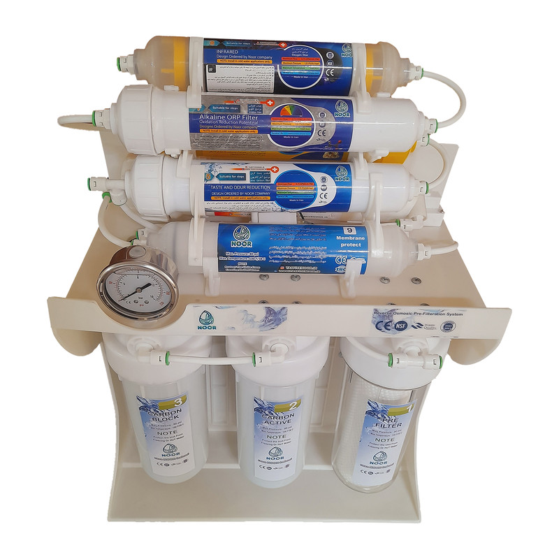 فیلتر p.p یک میکرون 150 گرم ، فیلتر کربن اکتیو ، فیلتر کربن بلاک ، فیلتر ممبران film tec ، فیلتر پست کربن ، فیلتر مینرال یا معدنی ، فیلتر قلیایی ، فیلتر اکسیژن ساز ، فیلتر محافظ ممبران