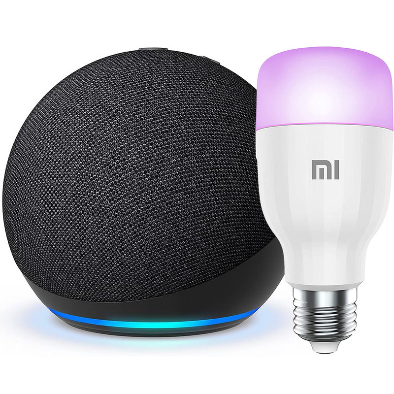 دستیار صوتی آمازون مدل اکو دات نسل 5 به همراه لامپ هوشمند شیاومی سازگار با الکسا
