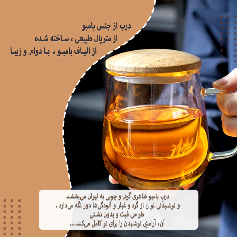 • جنس درب: بامبو - دربی از جنس چوب طبیعی بامبو که ظاهری زیبا و خاص به ماگ میبخشد و حس طبیعت را به شما منتقل میکند.