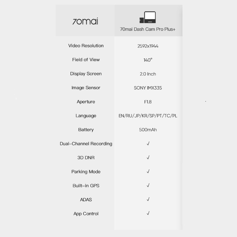 دوربین فیلم برداری خودرو سوِنتی مِی مدل Dash cam Pro Plus + Rear cam Set (Rco6) A500S