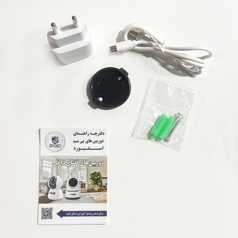 پایه سقفی ، پیچ و رول پلاک ، آداپتور مخصوص ، کابل اتصال دوربین به آداپتور ، دفترچه راهنما