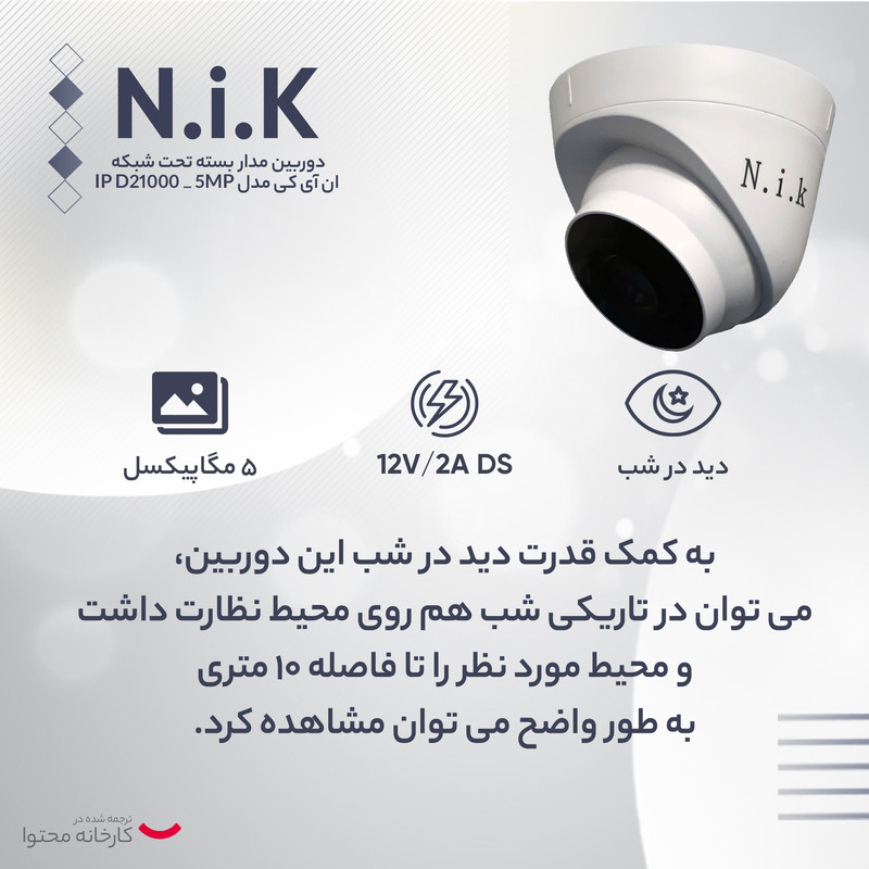دوربین مداربسته تحت شبکه ان آی کی مدل IP D21000 _ 5MP