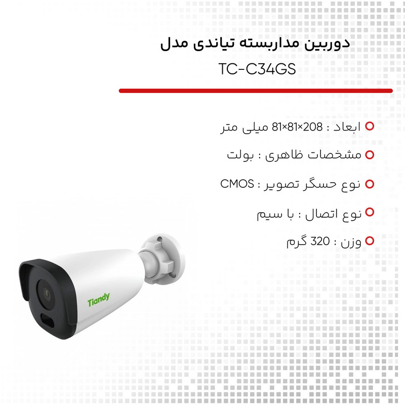 دوربین مداربسته تحت شبکه تیاندی مدل TC-C34GS Spec: I5/E/Y/C/SD/2.8m