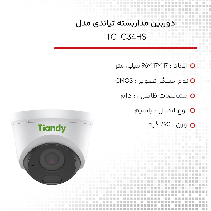 دوربین مداربسته تحت شبکه تیاندی مدل Tiandy TC-C34HS-Spec-I3-E-Y-C-2.8mm-V4.0