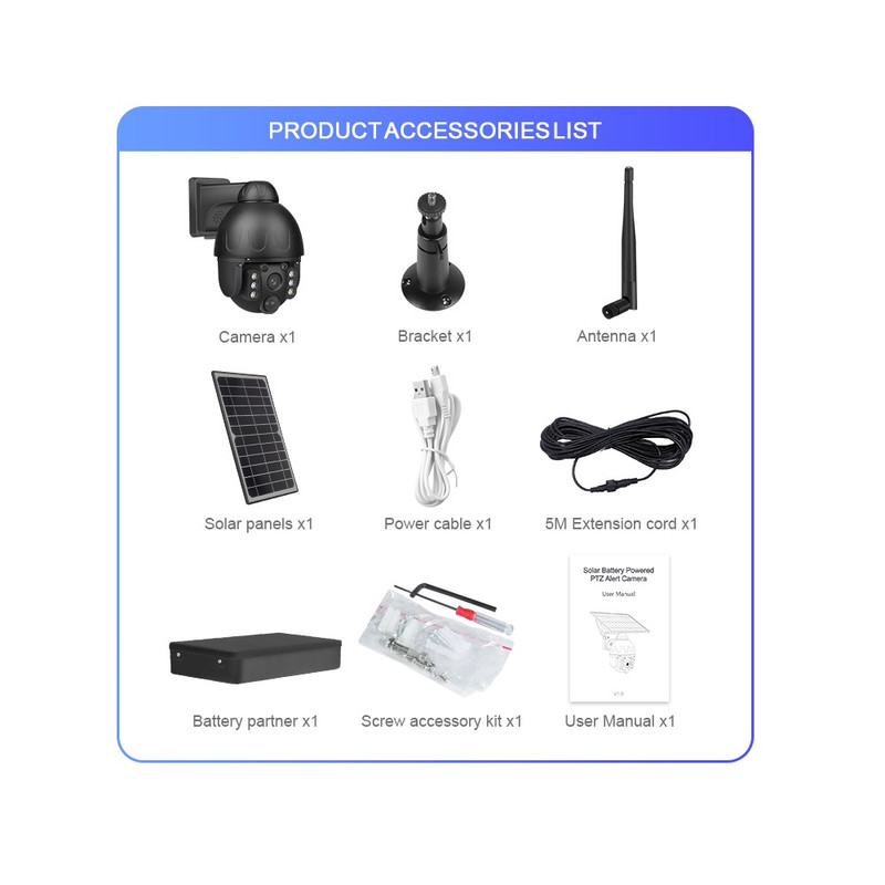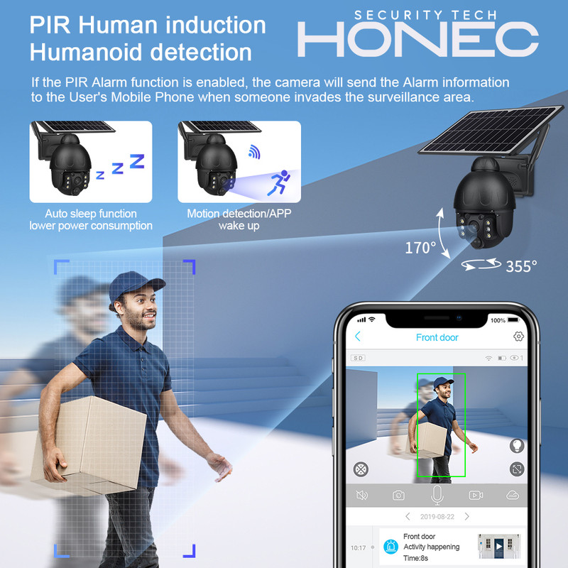 • Adopt high-performance 1/2" black light full-color image processor • 7.8W solar rechargeable built-in battery