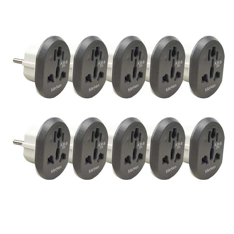 این مجموعه شامل 10 عدد دوشاخه تبدیل برق 3 به 2 می باشد | این تبدیل 20 آمپر می باشد