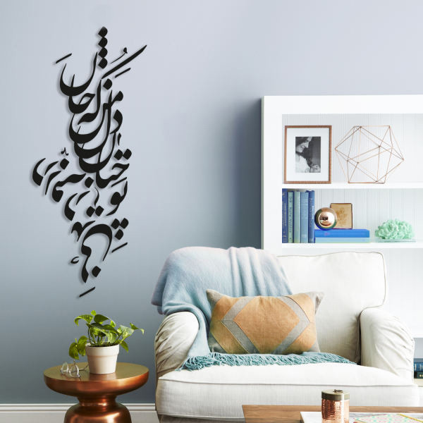 دیوارکوب مدل چوبی شعر تو چنان در دل من رفته که جان در بدنی کد T51-2