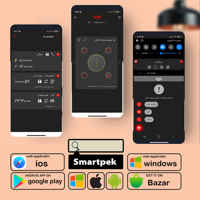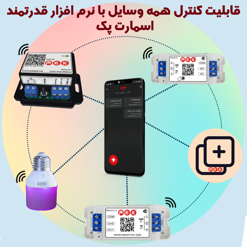 قابلیت اتصال به پروژکتور، نورمخفی، لوستر، مهتابی، چای ساز، پلوپز، درب، لامپ، آکواریوم، پمپ و ... جهت هوشمند کردن.