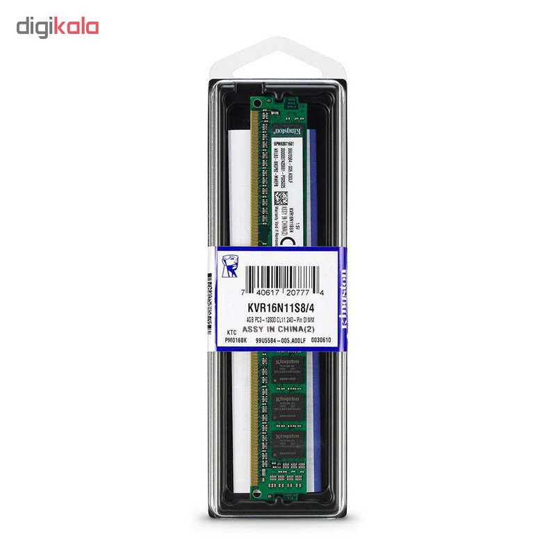 رم دسکتاپ کینگستون DDR3 تک کاناله 1600 مگاهرتز CL11 مدل KVR ظرفیت 4 گیگابایت