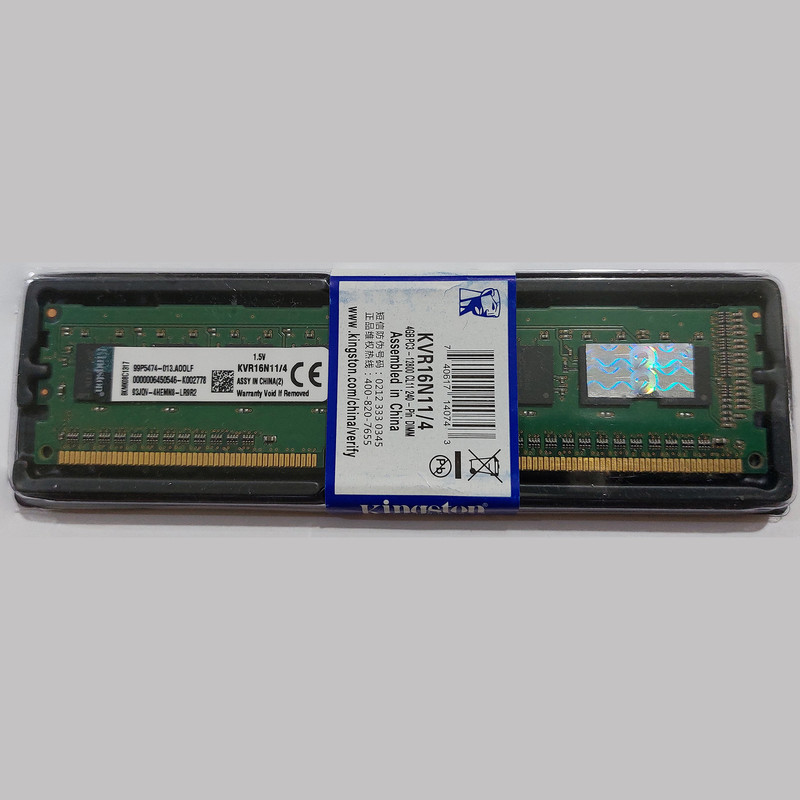 رم دسکتاپ DDR3 تک کاناله 1600 مگاهرتز CL11 کینگستون مدل KVR16N11/4 PC3-12800 ظرفیت 4 گیگابایت
