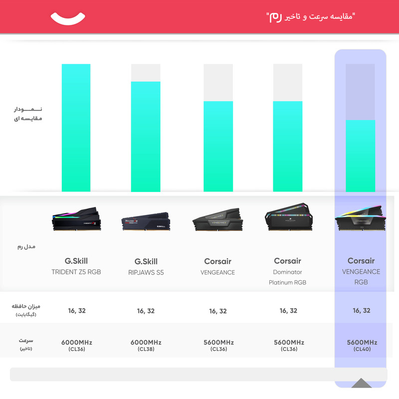 رم دسکتاپ DDR5 دو کاناله 5600 مگاهرتز CL40 کورسیر مدل VENGEANCE RGB ظرفیت 32 گیگابایت