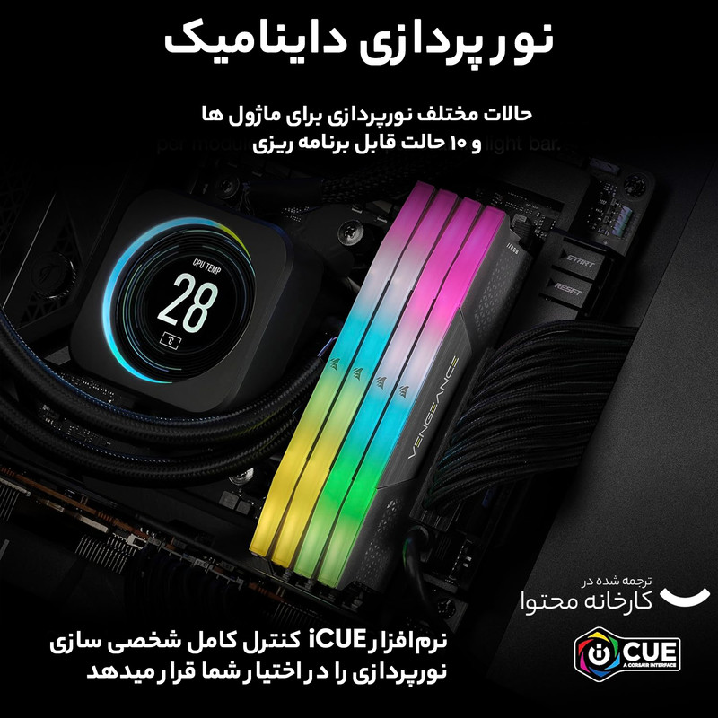 رم دسکتاپ DDR5 دو کاناله 5600 مگاهرتز CL40 کورسیر مدل VENGEANCE RGB ظرفیت 48 گیگابایت