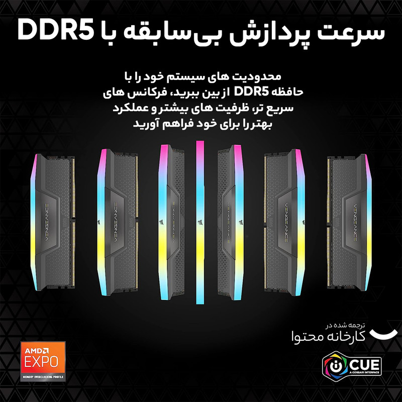 رم دسکتاپ DDR5 دو کاناله 6000 مگاهرتز CL36 کورسیر مدل VENGEANCE RGB ظرفیت 32 گیگابایت