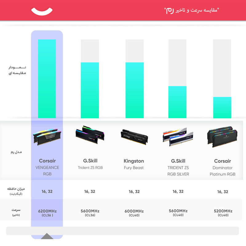 رم دسکتاپ DDR5 دو کاناله 6200 مگاهرتز CL36 کورسیر مدل VENGEANCE RGB ظرفیت 32 گیگابایت