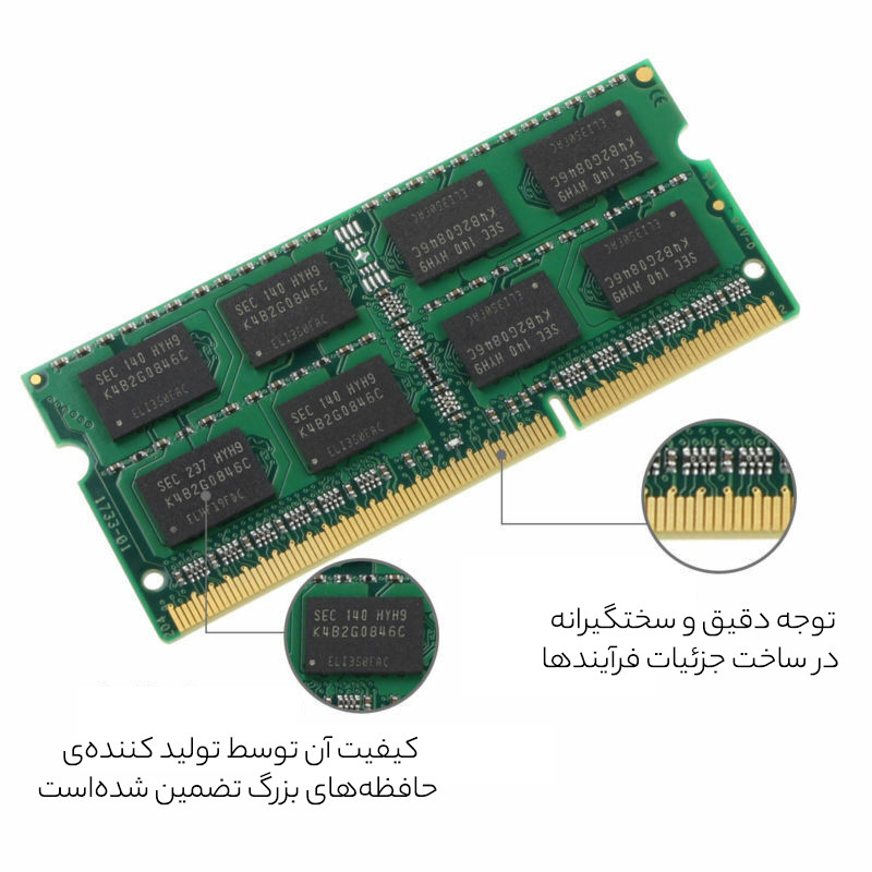 رم لپ تاپ سامسونگ مدل 1333 DDR3 PC3 10600s MHz ظرفیت 4گیگابایت