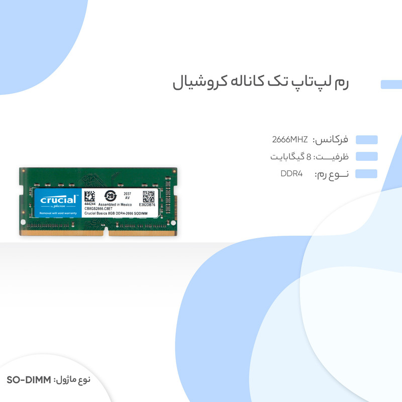 رم لپ تاپ DDR4 تک کاناله 2666 مگاهرتز CL19 کروشیال مدل Basics ظرفیت 8 گیگابایت