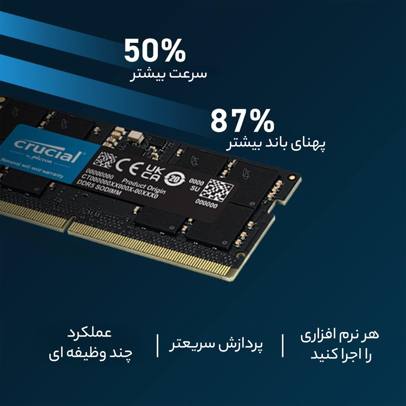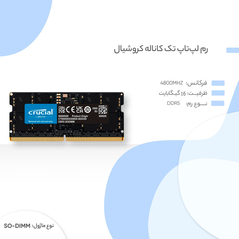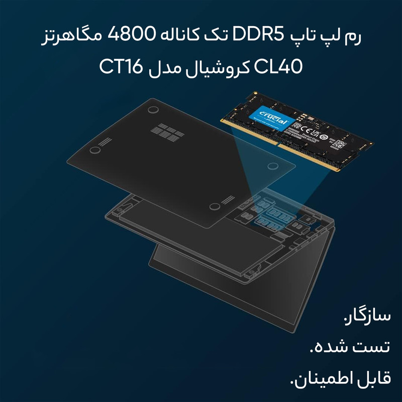 رم لپ تاپ DDR5 تک کاناله 4800 مگاهرتز CL40 کروشیال مدل CT16 ظرفیت 16 گیگابایت