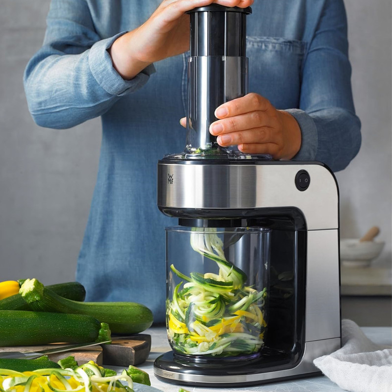 توان مصرفی 80 وات، دارای سه عدد رنده رشته کن با سایزهای 3 و 5 و 9 میلیمتر، ساخته شده از استیل منحصربفرد دبلیو ام اف Cromargan مقاوم در برابر خط و خش، طراحی بسیار مدرن و در عین حال کاربردی