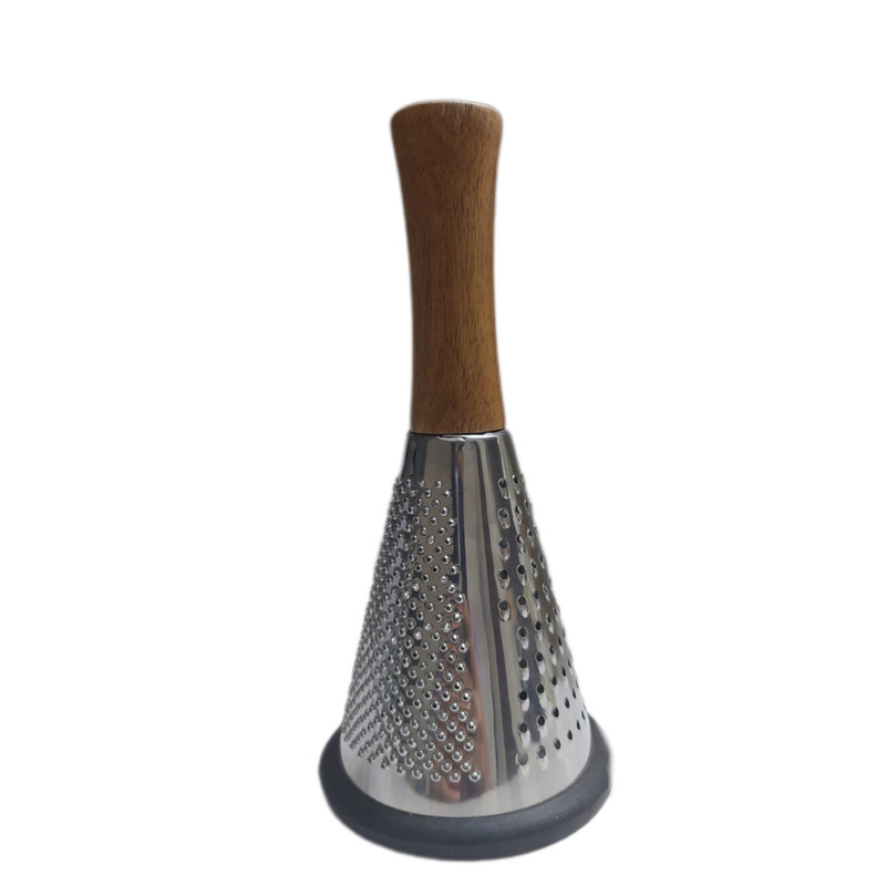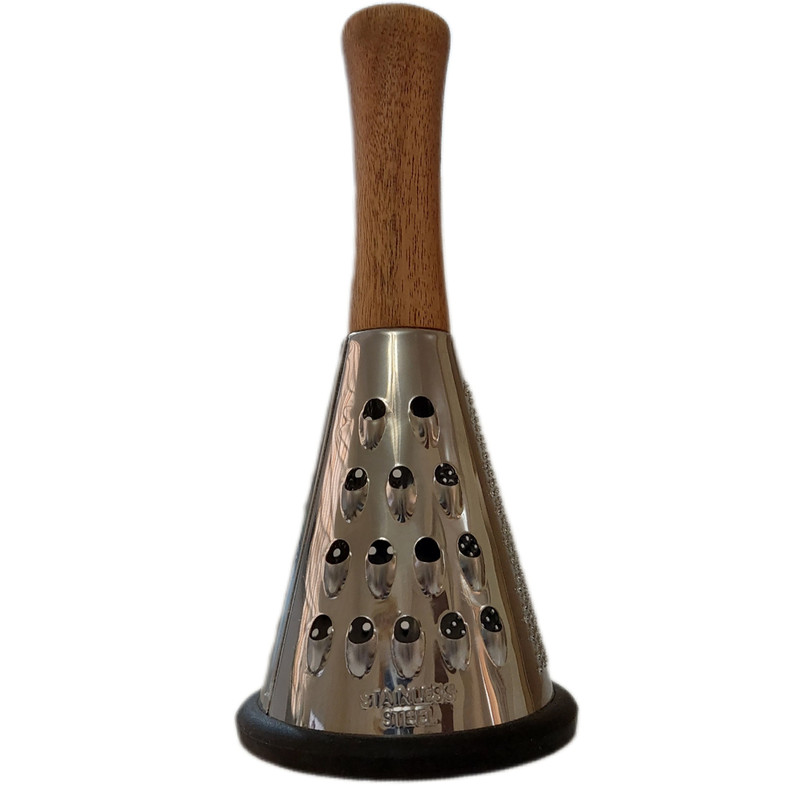 رنده مخروطی استیل با دسته از جنس چوب بسیار یکدست و با کیفیت و طراحی منحصر به فرد. جنس بدنه از استیل ضد زنگ و بسیار براق است و کف آن از جنس سیلیکون بوده که از لیز خوردن رنده در حین کار جلوگیری میکند.