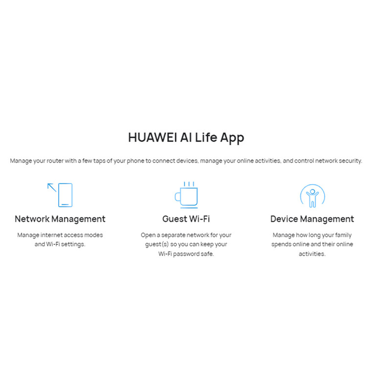 پروتکل 802.11kv، IPv4/IPv6، تایمر Wi-Fi، Wi-Fi مهمان، محدود کردن سرعت دستگاه، فیلتر آدرس MAC، کنترل والدین، پشتیبانی از VPN، DMZ/سرور مجازی، روشهای اتصال WAN شامل PPPoE/DHCP/IP استاتیک/Bridge/