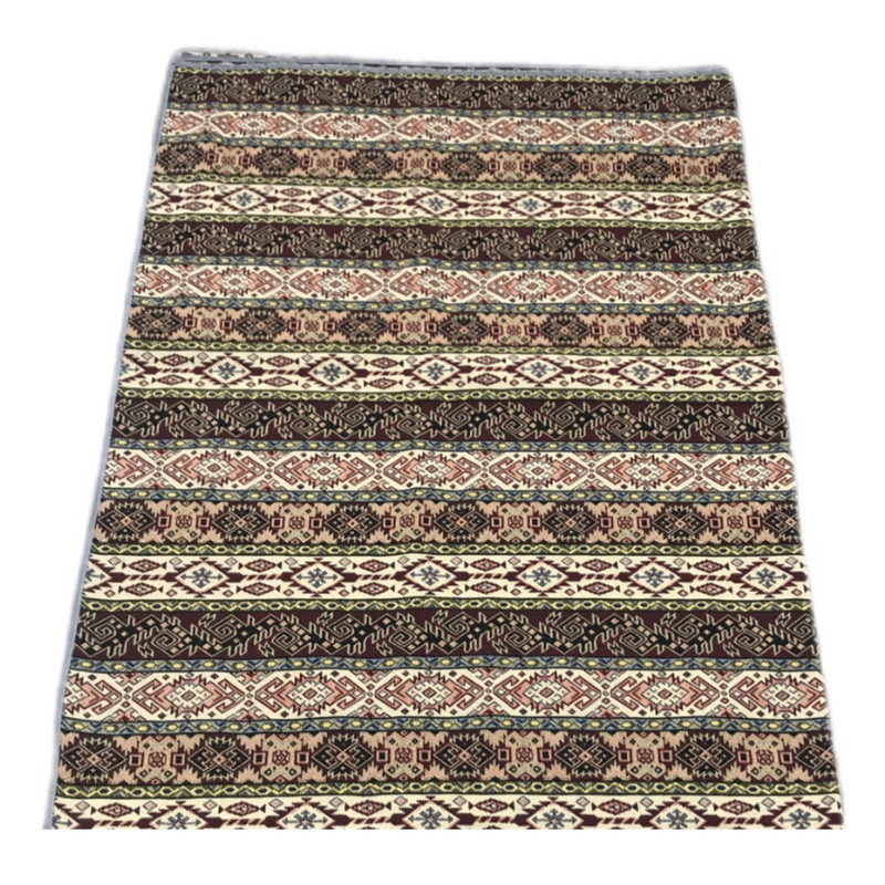 روفرشی( زیرسفره) ۱۴ نفره مدل جاجیم ترکمن موجود، دارای بالاترین تراکم با طرح و نقش زیبا،نواردوزی کامل و محکم خانگی مطابق طرح روفرشی (زیرسفره)، خیال شما را از کثیف شدن فرش ها موقع غذا خوردن، مهمانی ها و بازی کودک عزیزتان آسوده میکند. از این محصول