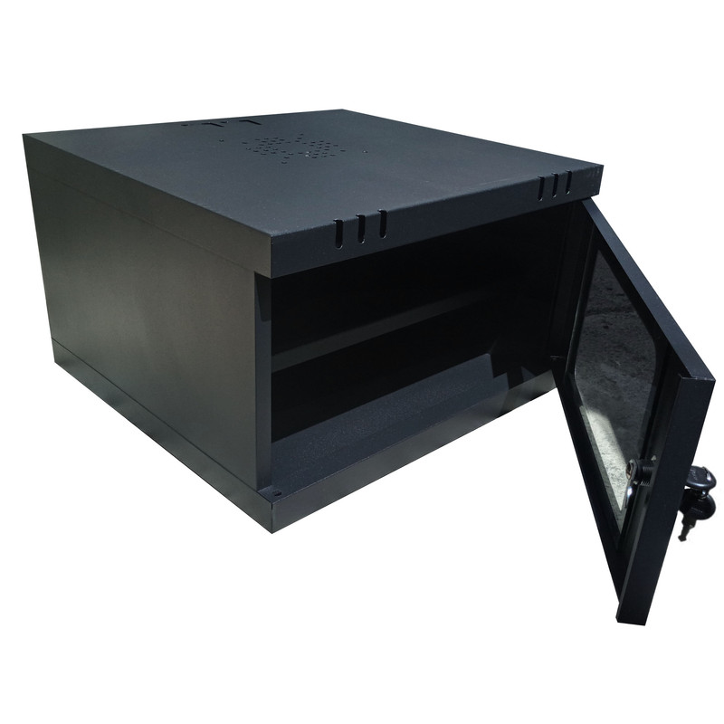 رک 5 یونیت سینی دار درب فریم فلز و شیشه مخصوص دی وی آر و شبکه با رنگ مشکی استاتیک و قفل درجه یک وبا امکان نصب فن8x8 و 12x12 و قابلیت ورود کابل از بالا و پایین