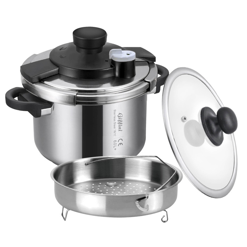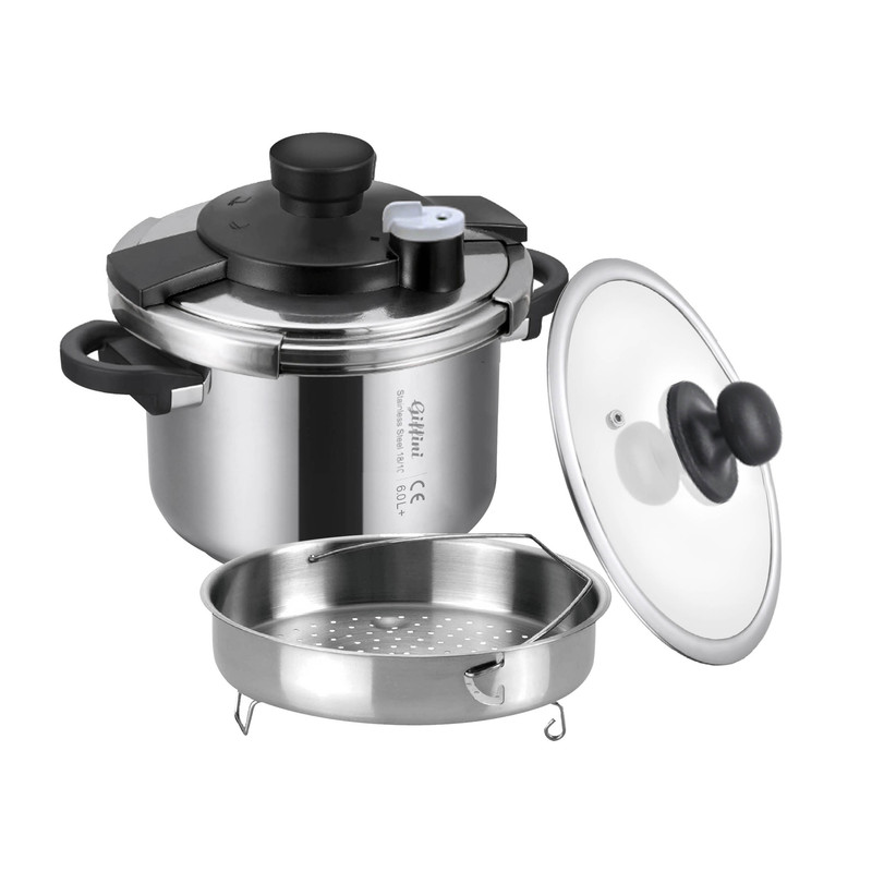 -زودپز 6 لیتری با درب کلیپسو -دارای درب پیرکس اضافی برای استفاده بصورت قابلمه -پخت سریع و آسان -دارای دکمه ۲ نوع پخت بسیار سریع و متوسط -استیل براق و عالی -دارای 2 سوپاپ اطمینان -دارای استاندارد CE اروپا -دارای دسته تاشو برای جا گیری کمتر در کابینت -دارای درب کلیپسو و بسیار راحت و باز و بسته شدن -دارای کفه ۵ لایه -دارای واشر سیلیکونی با عمر بسیار طولانی دارای بخارپز با پایه -مدل پلاس-اصلGIFFINI