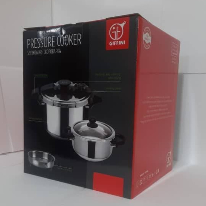 - اصل GIFFINI -دارای استاندارد CE اروپا -دارای واشر سیلیکونی HIGH QUALITY -زودپز ۴+۶ لیتری با درب کلیپسو -دارای درب پیرکس اضافی -پخت سریع و آسان -دارای دکمه ۲ نوع پخت بسیار سریع و متوسط -استیل براق و عالی ۱۸/۱۰ -دارای سوپاپ اطمینان - ۱ شیار سوپر اطمینان -دارای نشانگر پر شدن بخار زودپز -دارای دسته نسوز باکالیت -دارای درب کلیپسو و بسیار راحت و باز و بسته شدن -دارای کفه ۶ لایه -دارای واشر سیلیکونی با عمر بسیار زیاد -استیل براق درون و بیرون زودپز - ساخت GIFFINI -دارای سبد بخارپز