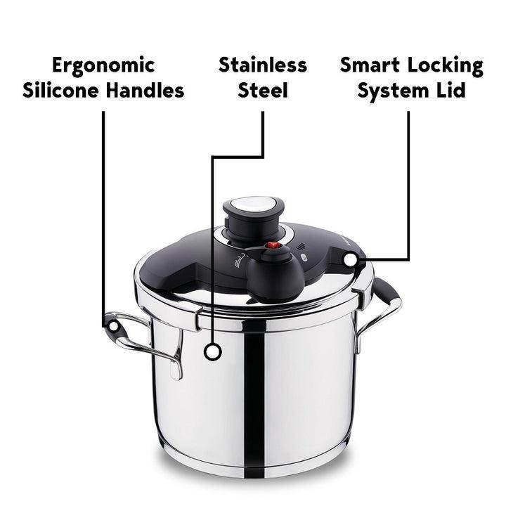 دارای 3 سیستم قفل ایمنی درب جهت کنترل خروج بخار در هنگام پخت و ذخیره انرژی و زمان با حداکثر ضریب امنیت